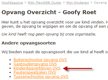 Als een ingelogde ouder opvang wil aanvragen voor een bestaand kind is er een link naar dagopvang aanvragen in de sectie Andere opvangsoorten toegevoegd. Deze sectie maakt deel uit van de webpagina met het van het opvangoverzicht van het kind: