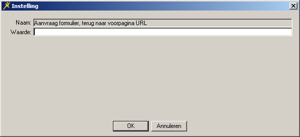 Met de parameter Aanvraagformulier - Terug naar voorpagina URL bepaalt u waar de ouder terugkeert na het voltooien van het inschrijfproces. Bijvoorbeeld terug naar de webpagina van uw bedrijfswebsite. U vult dan in http://www.naamvanuwkdv.nl/inschrijven.nl. Als u niets invult gaat de klant in spe terug naar de inlogpagina van de flexweb-website en de ingelogde ouder terug naar zijn flexweb-thuispagina.