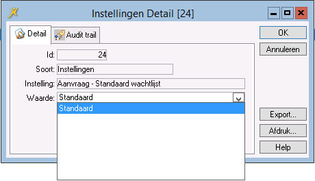 Met de parameter Aanvraag – Standaard wachtlijst kunt u aangeven of de aanvraag op een bepaalde wachtlijst moet komen.