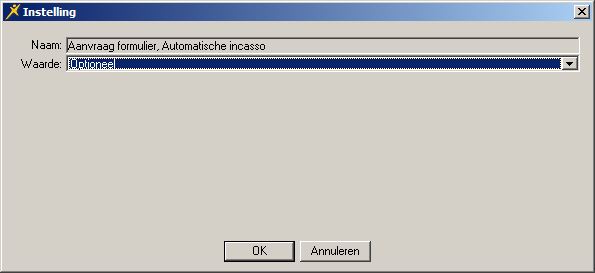 - Dubbelklik op Aanvraagformulier, Automatische Incasso in deelvenster Website instellingen. U ziet het volgende invoervenster: