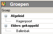 Stel dat u de kalender niet van toepassing wilt laten zijn op de groep Ballenbak. In dat geval kiest u een andere kalender in het lijstvenster en koppelt de groep Ballenbak via tabblad Koppelingen van die kalender. Zodra u dat heeft gedaan wordt de groep Ballenbak in deelvenster Groepen van bovenstaande afbeelding weergegeven met de status Elders gekoppeld: