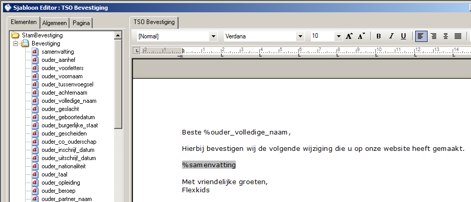 NB: Let op de veldvariabele %samenvatting. De inhoud van die samenvatting hangt af van wat de ouder heeft gewijzigd.
