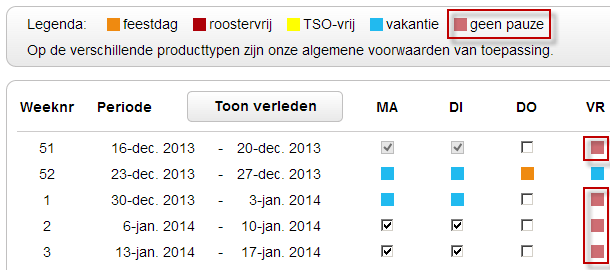 Hiermee bepaalt u of de ouder TSO kan afnemen. In dit geval - zie invulling op afbeelding - ziet een ouder in het onderdeel TSO-registratie van het klantportaal dat er op de vrijdag geen pauze is: