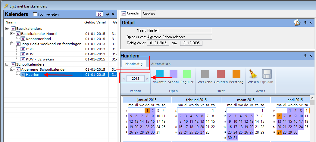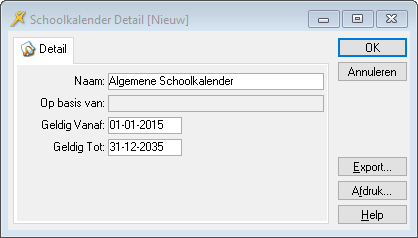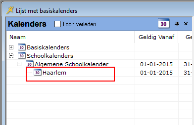 In de lijst met basiskalenders kunt u één of meerdere schoolkalenders aanmaken.