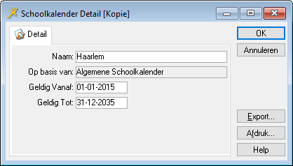 Geef de nieuwe schoolkalender een naam in het veld Naam.