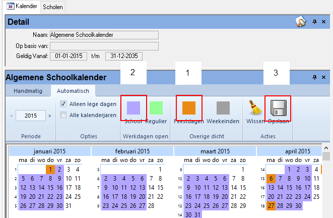 De schoolkalender wordt gekoppeld aan één of meerdere scholen.
