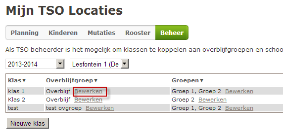 Klik op Bewerken in de kolom Overblijfgroep in de regel van de desbetreffende klas: