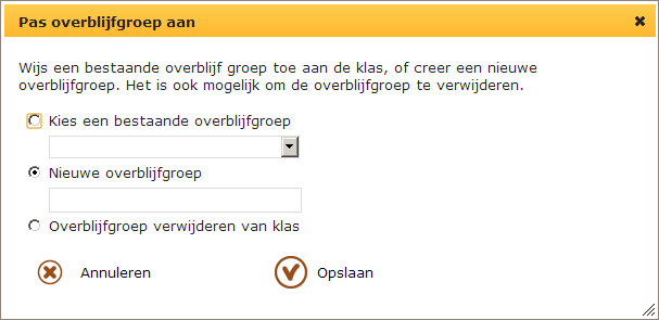 Schakel het selectierondje Nieuwe overblijfgroep in: