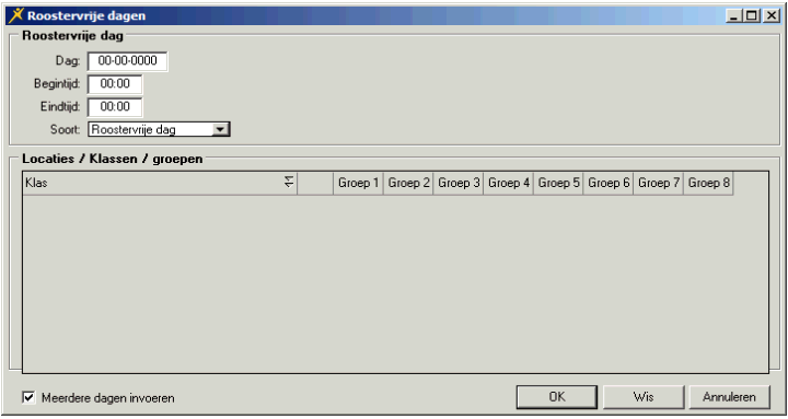 Schakel het selectievakje Meerdere dagen selecteren (links onderin het invoervenster) uit als u maar voor één datum een roostervrije dag wilt invoeren.
