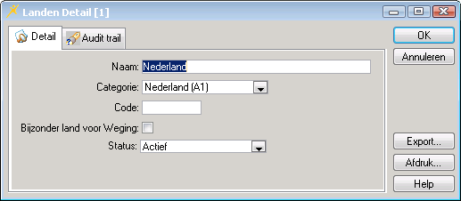 Bij afwijkingen in naam of of omschrijving past u deze aan door dubbel te klikken op het aan te passen land. U ziet bijvoorbeeld het volgende scherm:
