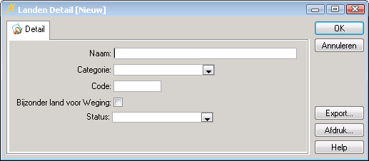 Het veld Bijzonder land voor weging is bedoeld voor het bepalen van de gewichtsklasse.