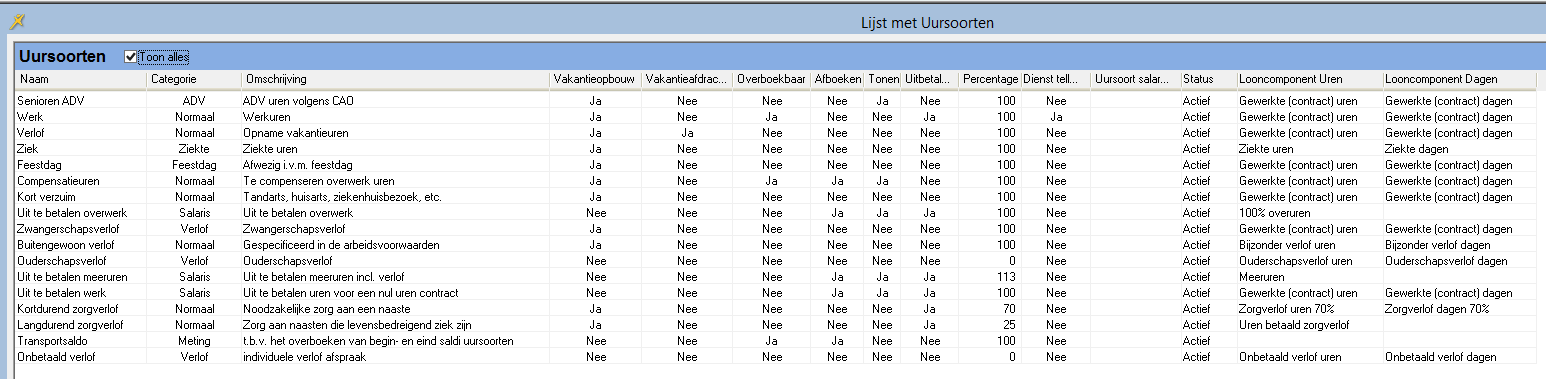 Flexkids is voorzien van een standaard set uursoorten Het is niet mogelijk om de uursoorten aan te passen, te verwijderen of toe te voegen.