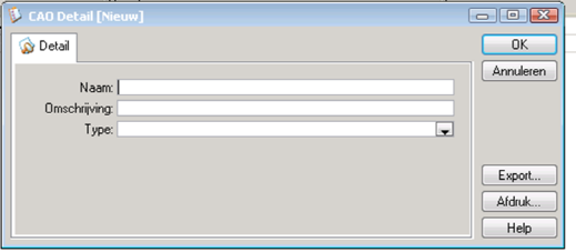 Klik met de RM in het deelvenster CAO's en kies Nieuw... U ziet het volgende venster: