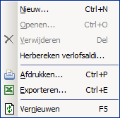 Klik met de RM op de regel van de datum. U ziet het volgende contextmenu: