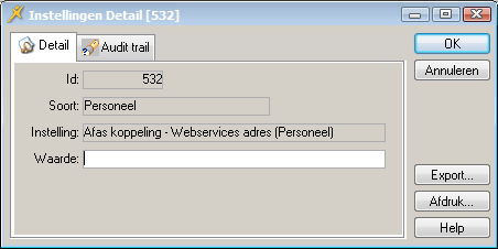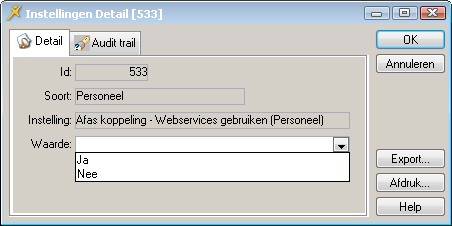 Met de systeemparameter Afas koppeling - Webservices gebruiken (Personeel) kunt u specificeren of u bij Afas Profit HRM gebruik maakt van webservices. u hebt de volgende mogelijkheden: