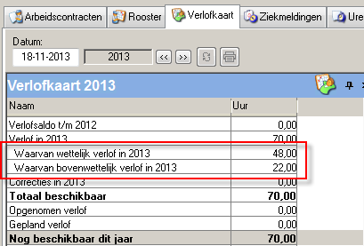 Als u bij de instelling Toon details voor verlofopbouw voor de waarde Ja kiest is dit het resultaat in flexkids.