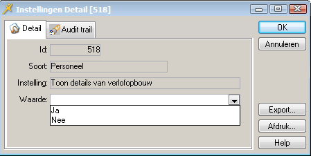 Op de verlofkaart van de medewerker in flexkids en in het Medewerkersportaal kunt u de details van de verlofopbouw, Wettelijke- en bovenwettelijke verlofuren te tonen. Bij de instelling Toon details voor verlofopbouw kunt u de volgende keuzes maken: