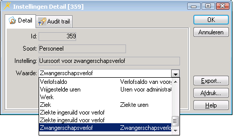 Om binnen flexkids standaard vast te leggen welke uursoort u gebruikt voor het registreren van zwangerschapsverlof kunt u van onderstaande instelling gebruik maken. Hiermee zorgt u ervoor dat wanneer er voor een medewerker uren geregistreerd worden voor zwangerschapsverlof automatisch deze standaard uursoort Zwangerschapsverlof gehanteerd wordt voor de registratie.
