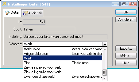 - Dubbelklik op de regel Uursoort voor taken personeel import. U ziet het volgende venster: