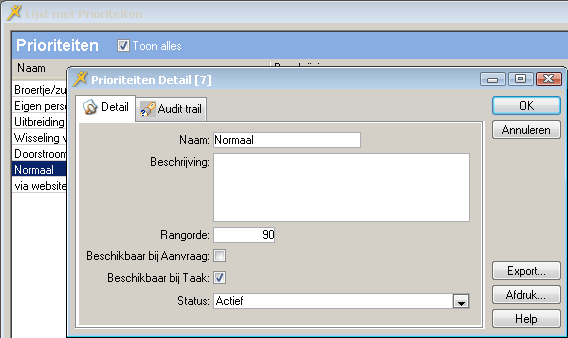 Beheer>Stamgegevens>Prioriteiten