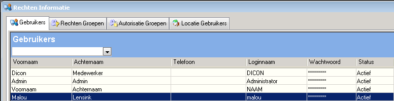 - Selecteer de gegevens van de eerste medewerker uit de lijst die u een autorisatiegroep wilt geven. U ziet het volgende venster: