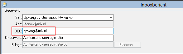 Bij het publiceren van documenten via de optie Publiceren met bericht kunt u in flexkids in het venster Inboxbericht een BCC adres invoeren. Door dit te doen wordt een kopie van het bericht naar het ingestelde e-mailadres gestuurd. Het BCC adres is niet zichtbaar voor de oorspronkelijk geadresseerde. Door dit BCC e-mail adres in te voeren bij de parameter INBOX Document– Standaard BBC adres wordt het BCC adres voortaan altijd standaard ingevoerd. U kunt bij het publiceren van het document dit BCC adres verwijderen.