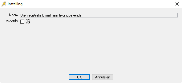 In het E-mailverkeer tussen medewerker en leidinggevende inzake tijdregistratie en de accordering daarvan wordt gebruiik gemaakt van (standaard) E-mail berichten. U kunt instellen dat automatisch een e-mailbericht wordt verzonden op het moment dat een medewerker haar uren ter goedkeuring bij de leidinggevende indient. U gebruikt daarvoor de parameter Urenregistratie E-mail naar leidinggevende.