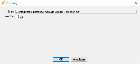 Als organisatie kunt u bepalen of de medewerkers de uren die zij hebben gewerkt op een groep of locatie waarop ze normaal niet werkzaam (*) zijn en die nog niet in hun urenregistratie voorkomen, zelf mogen registreren. U doet dit via de instelling Urenregistratie, personeel mag alle locaties / groepen.