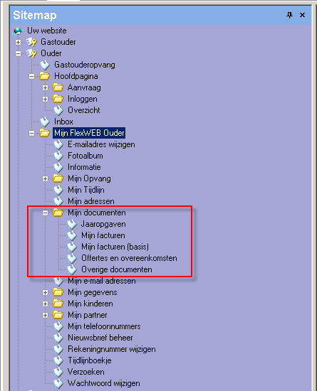- Open in de boomstructuur de map behorende bij de webpagina in kwestie.
