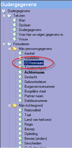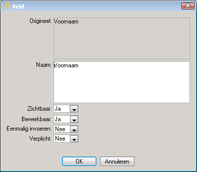 Als bij Eenmalig invoeren de waarde Ja is geselecteerd, dan mogen de bezoekers (ouders, gastouders) van de webpagina het desbetreffende veld éénmalig invoeren of wijzigen. De naam van de velden die zo zijn ingesteld worden voorafgegaan door de toevoeging (1):