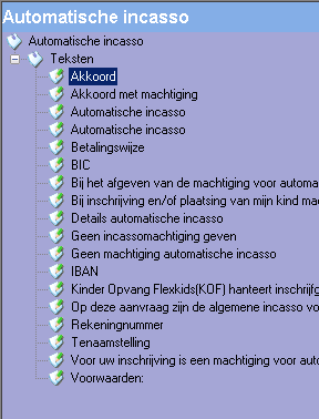 - Klik met de RM-knop op het desbetreffende tekstveld in de boomstructuur en kies Instellingen. U ziet het volgende venster: