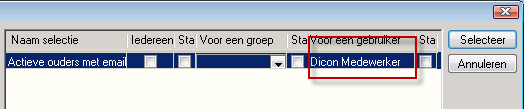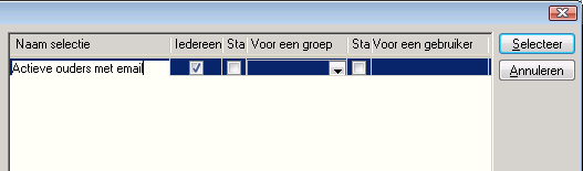 Een voorbeeld van een selectievenster is het selectievenster behorende bij het lijstvenster ouders: