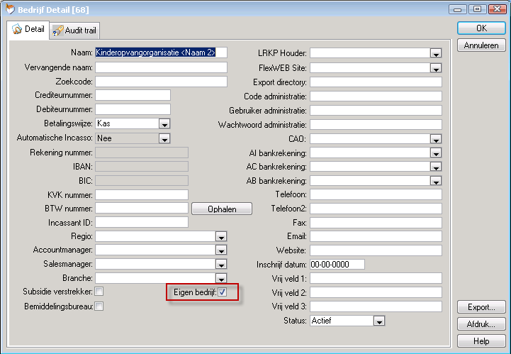 Om gegevens van bestaande bedrijven aan te passen dubbelklikt u op de bedrijfsnaam in de lijst met bedrijven. U kunt daarna elk gewenst veld aanpassen.