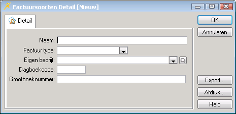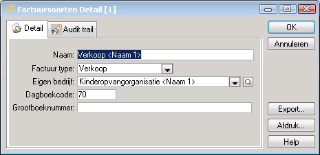 Pas de velden aan conform de gegevens op uw lijst met factuursoorten. Het veld Grootboeknummer is optioneel.