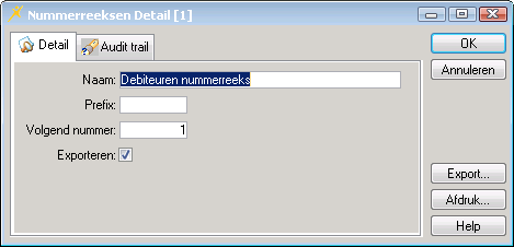 Open de debiteurnummerreeks door erop dubbel te klikken. U ziet het volgende scherm: