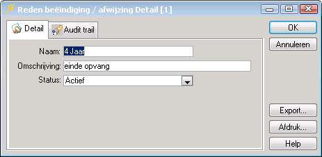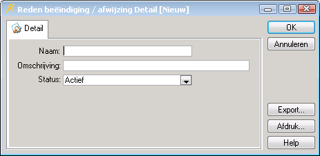 Beheer>Stamgegevens>Reden beëindiging/afwijzing