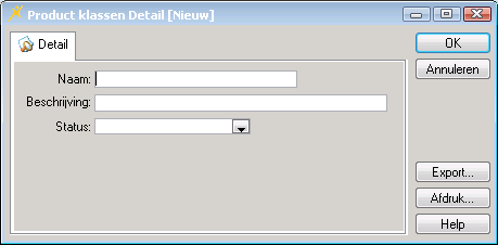 - Klik met de rechtermuisknop in de lijst met productklassen en kies Nieuw… U ziet het volgende scherm: