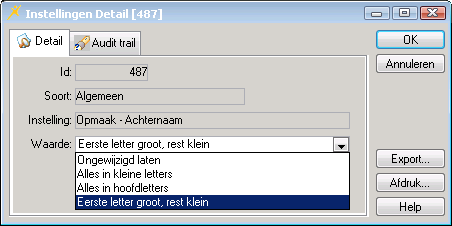 Als u bijvoorbeeld de eerste instelling Opmaak - Achternaam heeft ingesteld op Eerste letter groot, rest klein dan zal elke achternaam worden opgeslagen in dit format. Dus als ouder Janssen bij het invullen van haar achternaam alleen kleine letters heeft gebruikt, dan zal door het ingestelde format de naam toch als Janssen – dus met een hoofdletter J - worden opgeslagen in flexkids.