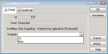 Met de instelling van de parameter Afas koppeling - Webservices gebruiken (Fiancieel) geeft u aan of u gebruik maakt van de automatische adres-opzoek-service.