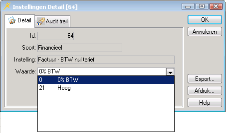 Met de instelling van deze parameter geeft u aan welk btw-nultarief u wilt hanteren bij de export naar uw boekhoudpakket.
