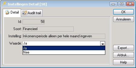 Met de instelling van de parameter Inkomensperiode alleen per hele maand ingeven bepaalt u of bij het opgeven van de geldigheidsperiode van het inkomen alleen hele maanden kunnen worden ingevuld of dat u de exacte datum kunt aangeven.