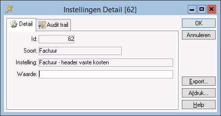 Beheer>Systeembeheers>Instellingen>(tab)Factuur