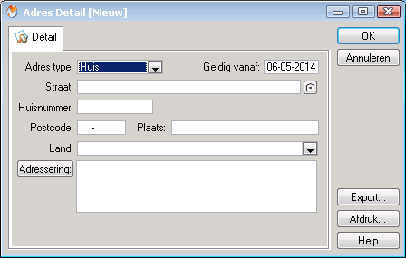 In het veld Geldig vanaf verschijnt automatisch de datum van de dag waarop u het adres invoert. Als u een ander datum wilt, dan overschijft u deze datum.