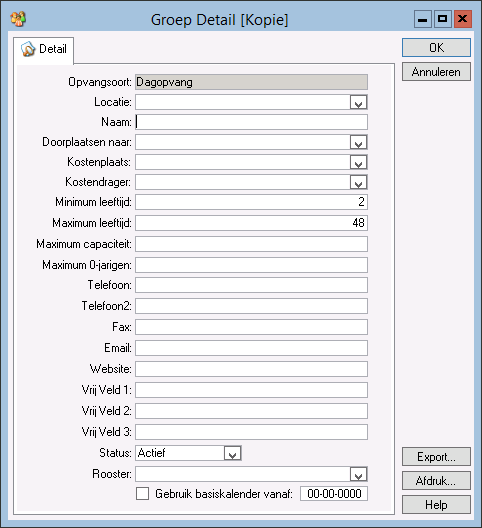 Vul - optioneel - de velden Telefoon t/m Vrij Veld 3 in. Het veldRooster is niet meer functioneel en kunt u dus negeren.