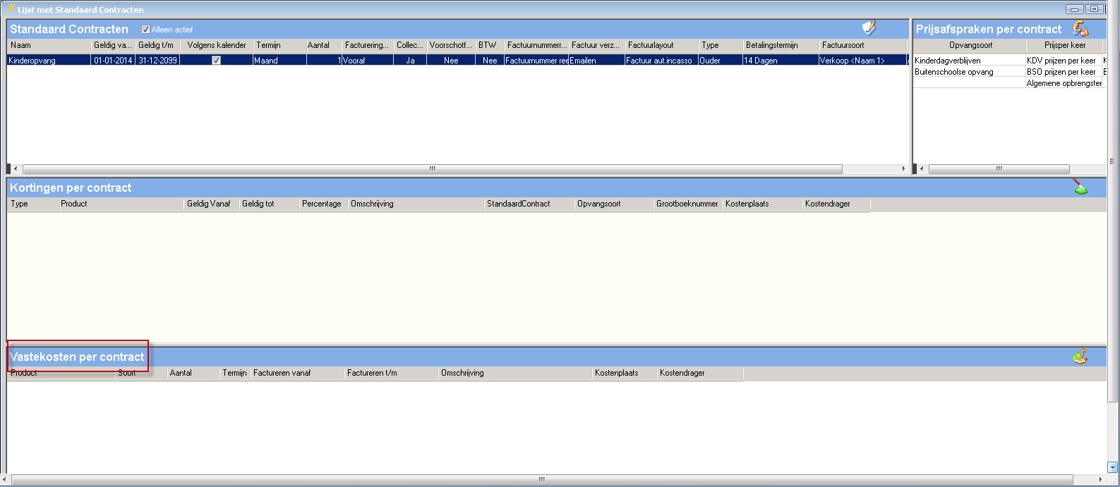 Zogenoemde Vaste Kosten kunnen worden toegevoegd op meerdere plaatsen. U kunt vaste kosten op ouderniveau onder het contract van de ouder toevoegen, maar ook op plaatsingsniveau.