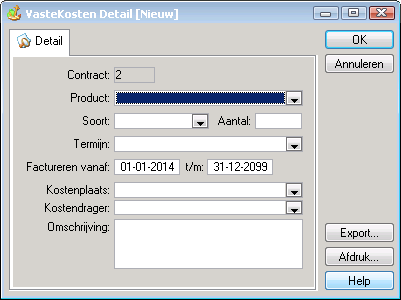 Geef de periode van de vaste kosten op zolang als deze gefactureerd moeten worden. Het is een verplicht veld.Kiest u bij termijn voor éénmalig dan sluit het veld t/m zich automatisch.