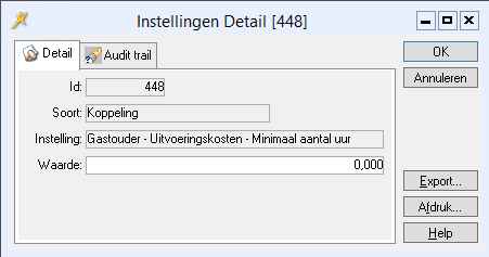 Bij de vraagouder worden zowel de opvanguren als de uitvoeringskosten in rekening gebracht. Als u werkt met de methodiek van uitvoeringskosten per uur kunt u via de systeemparameter Gastouder - Uitvoeringskosten - Minimaal aantal uur het minimum aantal uur vastleggen dat aan uitvoeringskosten in rekening wordt gebracht.