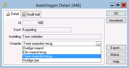 De systeemparameter Toon verleden standaard uit op het tabblad Koppeling dient de waarde Ja te hebben.