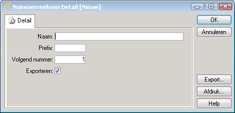 Met een Prefix wordt een extra voorvoegsel bij een nummer bedoeld. Het kan bij een factuur bijvoorbeeld handig zijn om bij 'Prefix' het jaartal in te vullen. Bijvoorbeeld 2003. Dit kunnen letters en cijfers zijn, of een combinatie van beide. Een 'Prefix' is een extra mogelijkheid. |