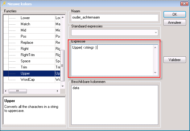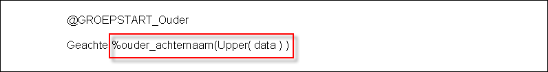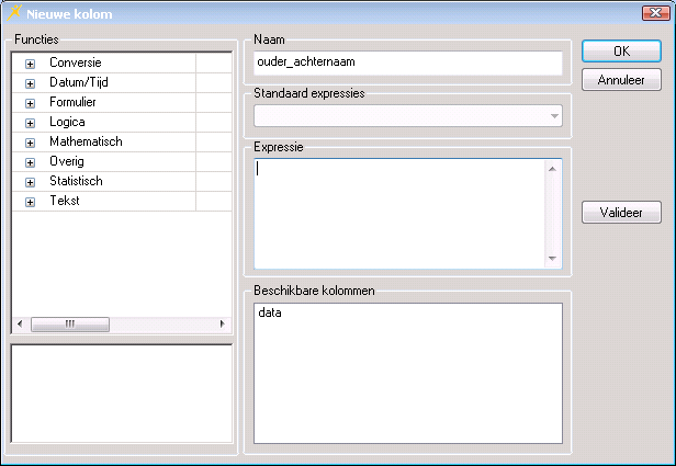 Klik op het veld %Ouder_achternaam en kies met rechts voor Expressie. U ziet het volgende venster: